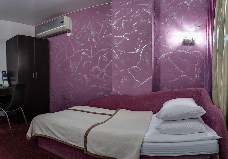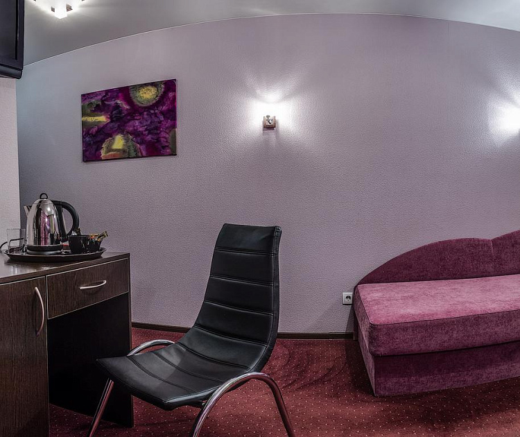 Комфортный номер площадью до 21 кв.м. с видом на город, расположенный только на 3 этаже отеля, рядом с рецепшеном. Каждый номер первой категории «Лайт» оснащен двумя раздельно стоящими односпальными диван-кроватями с ортопедическими матрацами. В распоряжении гостей телевизор, спутниковое телевидение, WI-FI, кондиционер, шкаф для одежды, рабочая зона с письменным столом и стулом. Для удобства в номере чайник и бесплатные: чай, кофе и минеральная вода. В ванной комнате к Вашим услугам душевая кабина, фен, халат, тапочки, туалет, туалетные принадлежности.