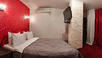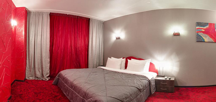Комфортабельный номер площадью до 26 кв.м. с видом на город. Каждый номер первой категории «Улучшенный» оснащен большой двуспальной кроватью с ортопедическим матрацом. В распоряжении гостей телевизор, спутниковое телевидение, WI-FI, кондиционер, холодильник, шкаф для одежды, рабочая зона с письменным столом и стулом. Для удобства в номере чайник и бесплатные: чай, кофе и минеральная вода. В ванной комнате к Вашим услугам душевая кабина, фен, халат, тапочки, туалет, бесплатные туалетные принадлежности. Предоставляется завтрак формата «Шведский стол».