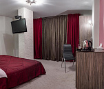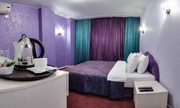 Комфортабельный номер площадью до 26 кв.м. с видом на город. Каждый номер первой категории «Улучшенный» оснащен большой двуспальной кроватью с ортопедическим матрацом. В распоряжении гостей телевизор, спутниковое телевидение, WI-FI, кондиционер, холодильник, шкаф для одежды, рабочая зона с письменным столом и стулом. Для удобства в номере чайник и бесплатные: чай, кофе и минеральная вода. В ванной комнате к Вашим услугам душевая кабина, фен, халат, тапочки, туалет, бесплатные туалетные принадлежности. Предоставляется завтрак формата «Шведский стол».