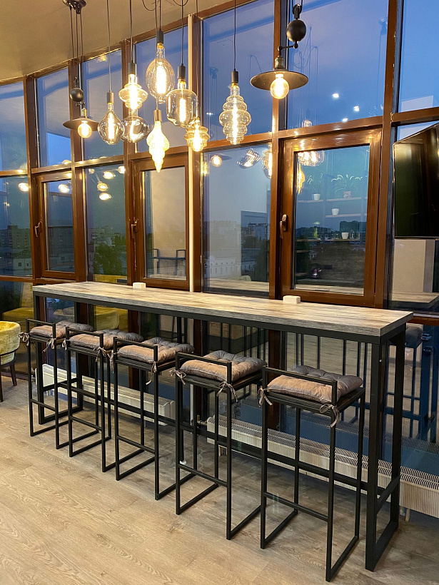 Современный многоместный номер пятой категории в стиле "Лофт" предназначенный для проживания 5-ти мужчин. В номере 3 двух-ярусных кровати. У каждой свой индивидуальный шкаф для хранения вещей. Внутри каждой кровати оборудована полочка для телефона. Двойной свет, общий и для чтения. Каждая кровать полностью закрывается шторами. Душевые кабины и туалеты для общего пользования. Есть общая зона отдыха с панорамным видом на город. Большой балкон с деревянной мебелью. Кухня, телевизор, диваны, барная стойка, холодильник, стиральная машина и другое. Интересный дизайн, свежие решения.